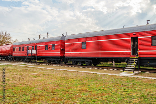 Red fire train on the track.