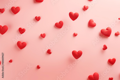 Red flying hearts on pink background. Design for Valentine's day, women's day, mother's day.