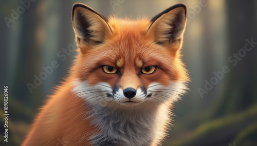 Red Fox's Intrigued Gaze: A captivating portrait of a vibrant red fox, showcasing its intelligent eyes and sleek fur, against a backdrop of a blurred, natural forest.