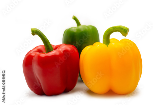 Red green and yellow sweet bell pepper. (clipping path)