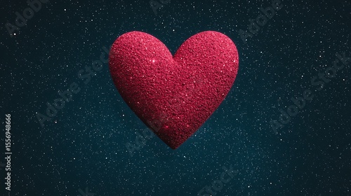 Red heart with a glittery texture against a dark blue background filled with white stars Celestial and romantic scene