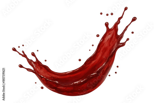 Red liquid splashing, vibrant juice or wine creating dynamic motion, frozen fluid shape, transparent background