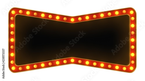 Red marquee gold light board sign retro on white background. 3d rendering