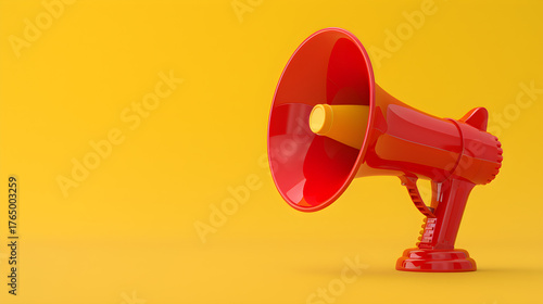 megaphone, announcement, red, communication, speaker, voice, audio, broadcast, public address, promotion, marketing, message, alert, warning, notification, device, technology, isolated, studio shot, vibrant