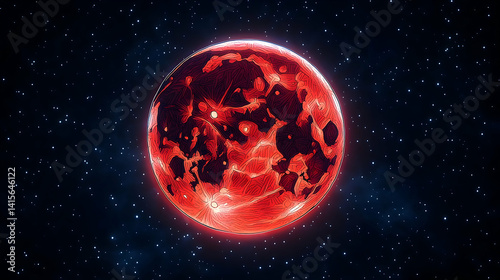 Red planet in a dark sky filled with stars textured surface and a glowing red outline creating a dramatic effect