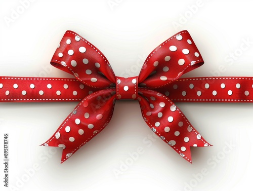 Red Polka Dot Ribbon Bow Isolated on White Background for Gift Wrapping and Decorations