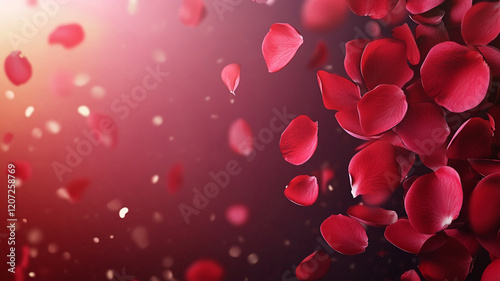 Red rose petals on a red background. Mother's Day, Valentine's Day, Wedding.
