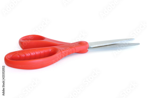scissors, red, plastic, sharp, metal, metallic, steel, nobody, isolated, isolated on white, white, white background, horizontal