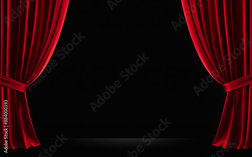 red stage curtain on black background, template
