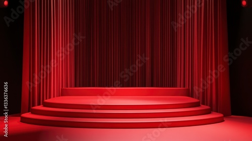 Red Stage with Curtains for Performance or Presentation Backdrop Concept