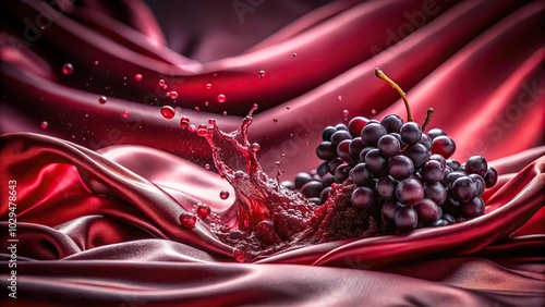 red wine splash on red fabric with black grapes macro image for decoration background