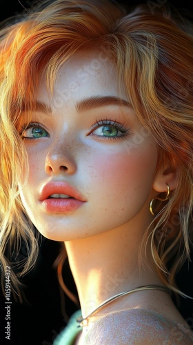 fashion, red hair, female, beauty, youthful, model, expression, digital illustration, skin, fashion model, digital artwork, eye, natural light, coiffure, portrait, avatar, missy, computer graphic, glamour, make-up, face, trendy, lip, photo, lighting