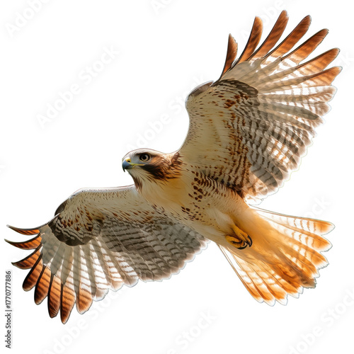 Red-tailed hawk in flight with wings spread, detailed wildlife illustration isolated on Transparent Background