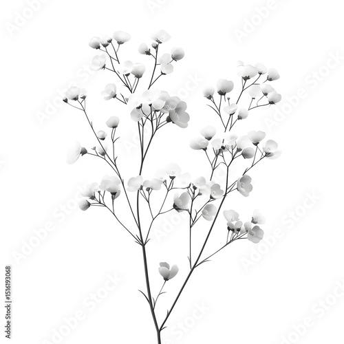Refined Flat Vector Art of Babys Breath in Detailed Line Drawing Style on Pristine Transparent and White Backgrounds