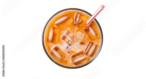 Refreshing iced beverage in a clear glass with ice cubes and a straw, perfect for summer enjoyment