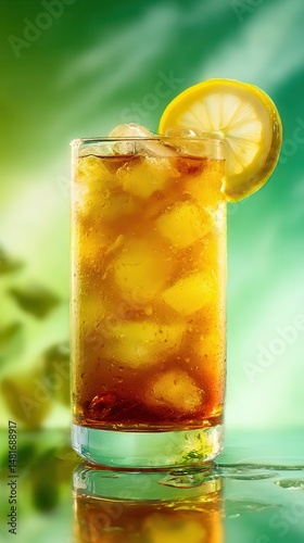 drink, iced, tea, lemon, glasses, ice, beverage, cool, refreshing, summer, yellow, brown, liquid, transparent, cold, delicious, sweet, fruit, citrous, slice, summer, refreshment, healthy, chilled, tasty, glassware, portion, closeup, photo, still, light, bright, image, background, nature