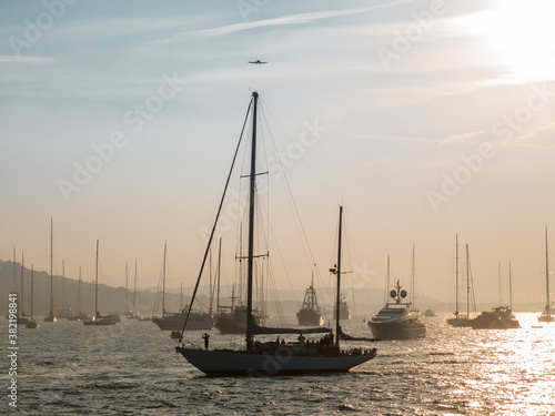 yacht, boat, sailing, water, sea, sailboat, sunset, blue, saint-tropez, regatta, france, french, provence, bay, cote d'azur, famous, gulf, haven, holiday, luxurious, luxury, mast, port, ship, sky, summer, sunny, tour tourism, travel, riviera, sport