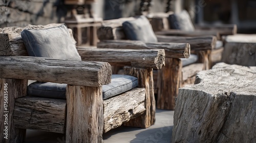 rustic, log, chair, furniture, seating, comfort, cushion, natural, wood, textured, weathered, vintage, antique, hand-made, artisanal, unique, cosy, filed, cabin, patio, garden, relaxation, tranquil, serene, peaceful, lifestyle, leisure, vacation, resort, hotel, rental, retreat, decor, style, modern, design, exterior, home