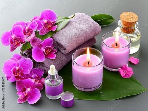 Relaxing spa treatment with candles and flowers home spa still life calm environment close-up view