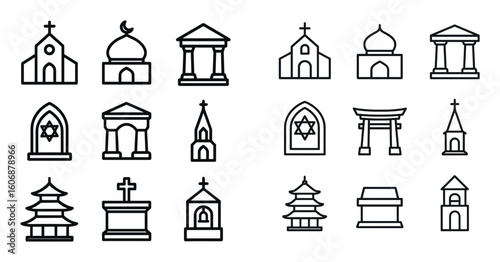 religious, building, bell tower, linear, stroke, faceted, simple, outline, wireframe, vector