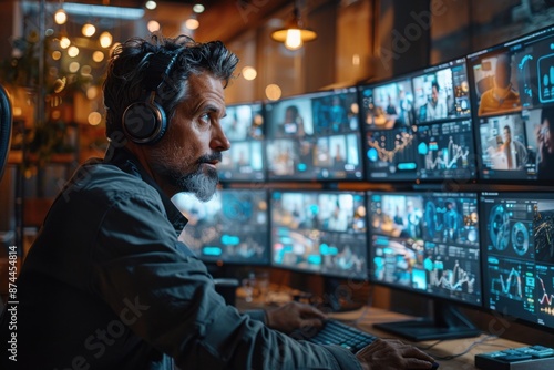 diverse, collaborating, technology, professional, workspace, telecommuting, business, connectivity, multicultural, teamwork, interactive, productivity, engagement, screen, conference call, modern, corporate, networking, global
