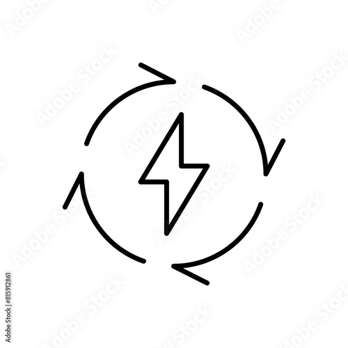 Renewable energy icon. Simple outline style. Cycle, electricity, design, arrow, circle, lightning, electrical, recycle energy concept. Thin line symbol. Vector illustration isolated.