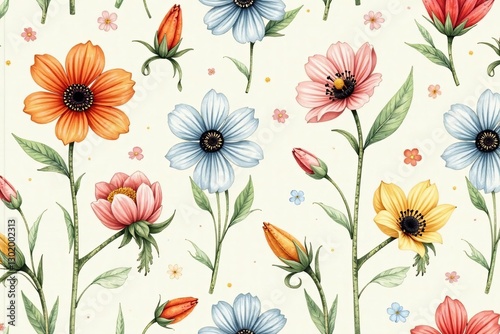 Repeatable pattern of charming flower drawings on a seamless backdrop, flower, drawings
