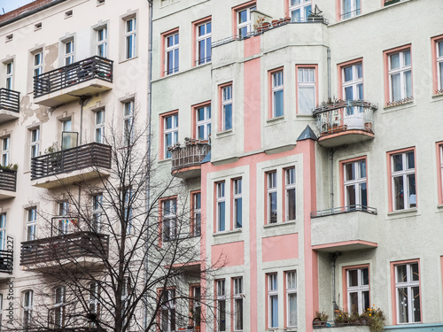 architecture, building, exterior, facades, balcony, window, apartment, residential, pink, tree, closeup, detail, residence, condominium