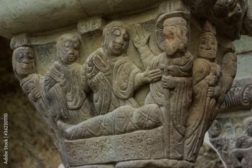 Resurreccion de Lazaró, capitel del claustro.Monasterio de San Juan de la Peña(s.XII-XIII) . Serrablo.Huesca.España.