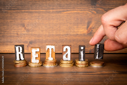 RETAIL Concept. Word from wooden blocks and money