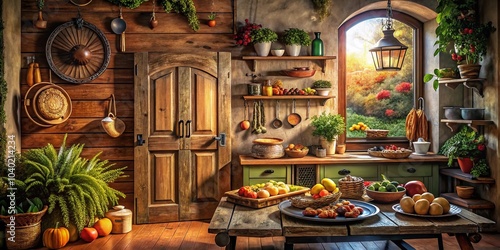 Retro Door Decorations in European Style: A Food Photography Delight for Vintage Kitchen Decor