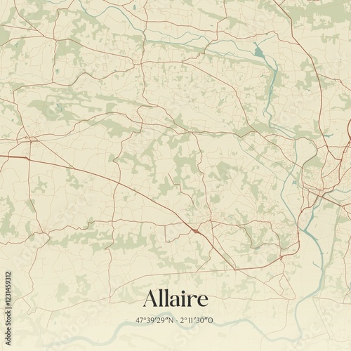 Retro map of Allaire, Bretagne, France. Vintage street map.