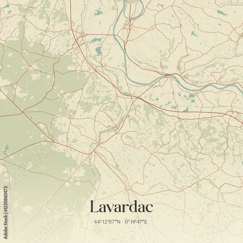 Retro map of Lavardac, Nouvelle-Aquitaine, France. Vintage street map.