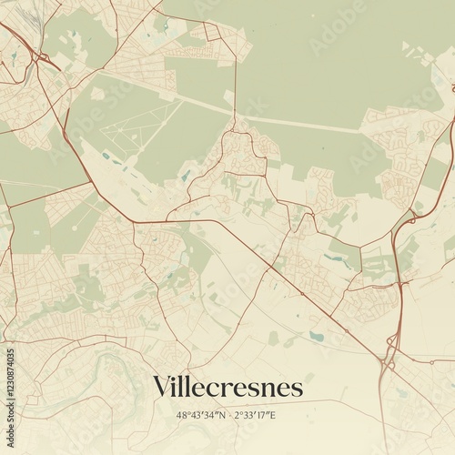 Retro map of Villecresnes, �le-de-France, France. Vintage street map.
