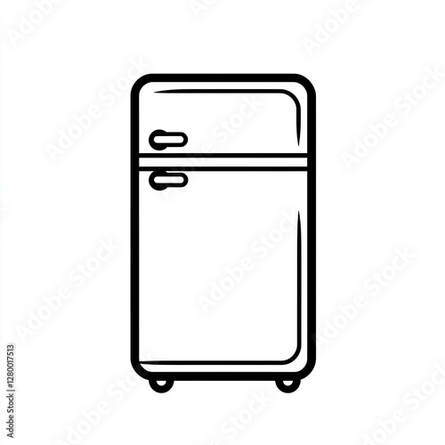 refrigerator, retro, appliance, kitchen, icon, graphic, design, black, white, outline, simple, modern, minimalist, illustration, vector, food, storage, household, home, image, drawing, style, flat, contemporary, vintage, classic, product, object, furniture, line, art, isolated, background