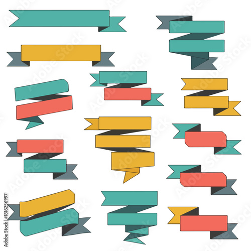 banner, ribbon, retro, vintage, design, vector, graphic, illustration, element, template, label, decorative, badge, scroll, frame, style, set, collection, old, classic, colourful, abstract, shape, modern, art, flat, tags, promotion, sale, icon, signs, symbol, sticker, blank, paper, scrapbook, teal, coral, yellow, minimalist, cartoon, simple, drawing, clip art, stylish