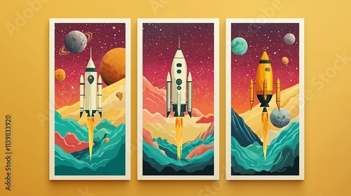 Retro space exploration poster with a sci-fi aesthetic and bold colors