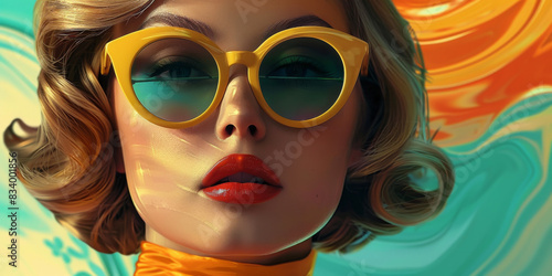 woman, summer, vacation, fashion, sunglasses, retro, vintage, collage, poster, generative, ai, beauty, face, hair, model, goggles, glamour, lip, mask, carnival, person, style, people, fun, make-up, red, 1, lady, outdoors