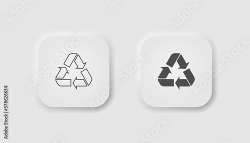 Reuse button in neumorphism style. Icons for business, UI, UX. Ecological symbol. Eco, trash, planet care, ecology, recycle, bio, organic. Neomorphic style. Vector illustration.