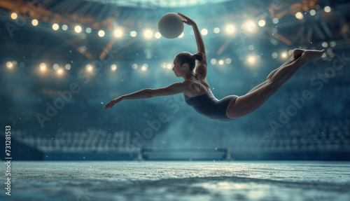 Rhythmic gymnastics, performing with ball, sport arena