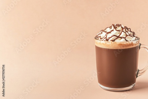 Rich coffee topped with whipped cream and chocolate drizzle, inv