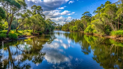 Riparian habitat in south-east queensland, australia, featuring the mary river's serene waters and lush vegetation, home to the endangered mary river turtle.