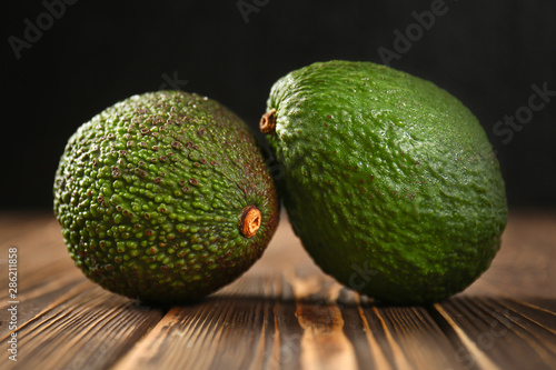 Ripe avocados on wooden table