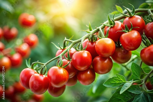 Ripe Cherry Tomatoes on the Vine, Freshly Harvested Organic Produce
