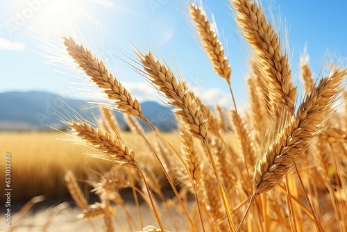 wheat, grain, agriculture, harvest, crop, straw, field, rural, countryside, farm, bread, food, background, season, cereal, sky, ear, nature, summer, plant, blue, gold, gold, ripe, farming, generative, ai