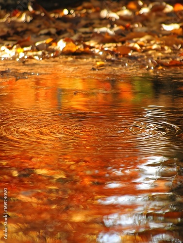 Rippling water reflecting autumn leaves in warm orange and gold tones Fall Ripples