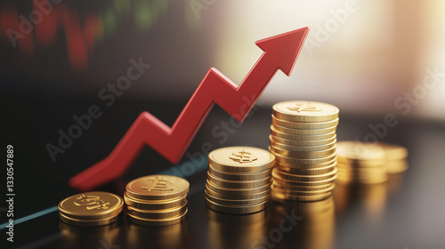 Rising chart with red arrow and gold coins