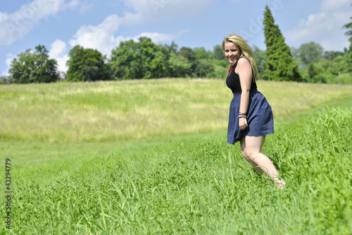 girl, portrait, woman, beauty, sensuality, blond, hair, field, smile, nature, green, grass, summer, season, spring, countryside, season