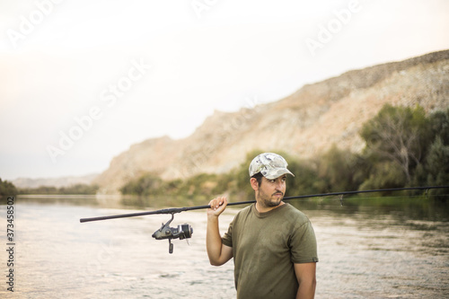 river fisherman with fishing rod