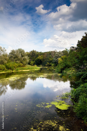 River on a summer day in the forest among the trees